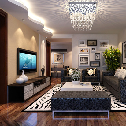適用房間:多用于裝有中央空調的戶型,因為中央空調厚度多在35厘米左右,迭級吊頂能夠增加層次感,對房高要求較高,一般要求要在2.7米以上。